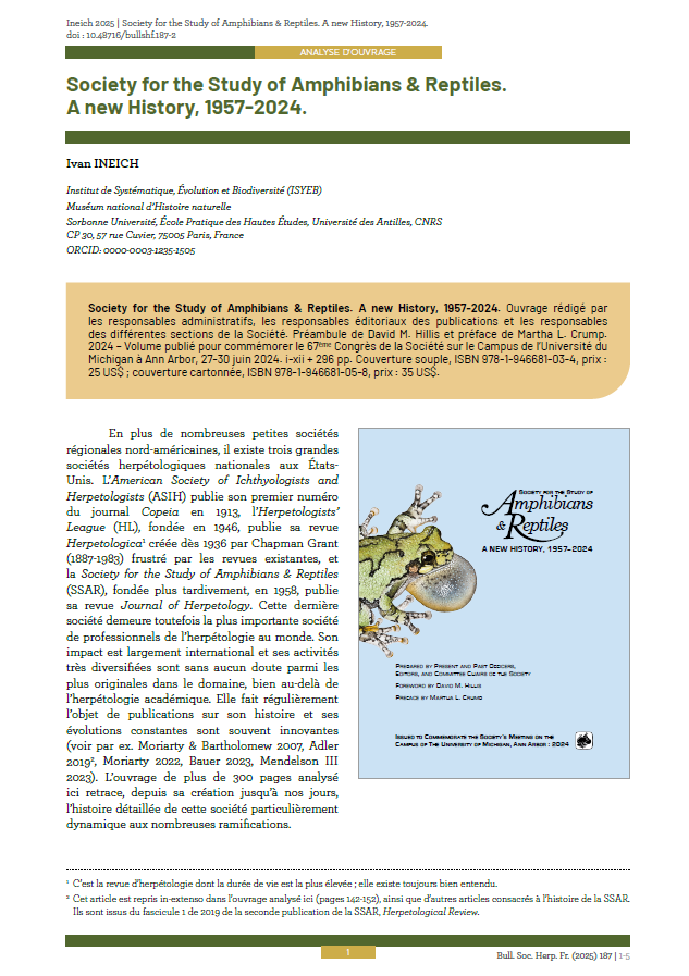 Society for the Study of Amphibians & Reptiles. A new History, 1957-2024. Ineich, 2025