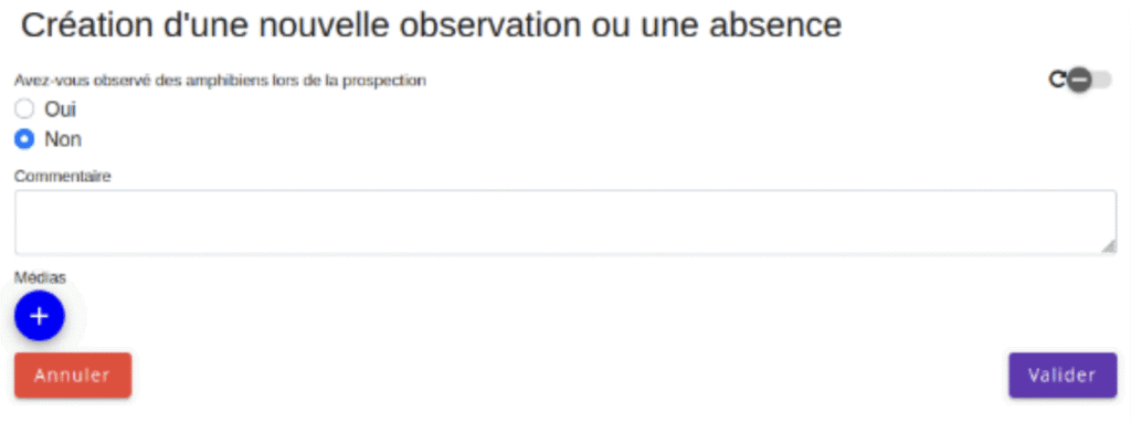 Bouton « Ajouter une nouvelle observation » sur le module de saisie POPAmphibien