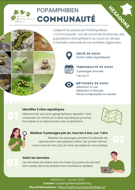 Il vise à suivre les tendances de populations nationales d’amphibiens à partir de protocoles standardisés.